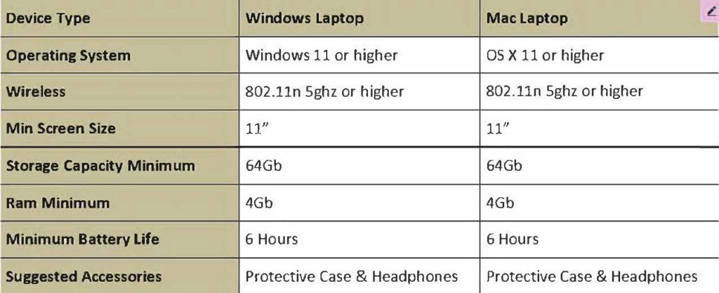 There is no obligation to purchase a device through this supplier, and we understand that some students may already have a laptop which they wish to bring to school. As long as the device meets the minimum specifications listed below, this is acceptable.